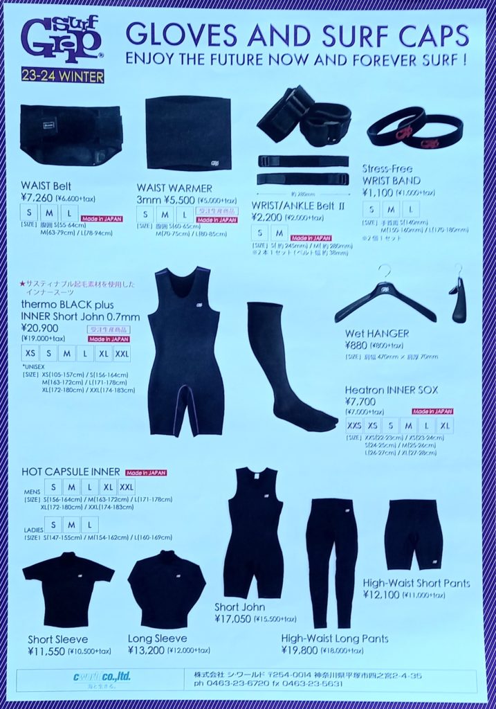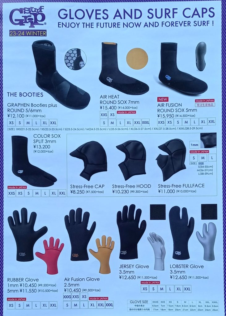 ブーツ、グローブ、勿論ウエットスーツも含め、ゴム製品の値上がりも他の商品に劣らず凄い。。です。